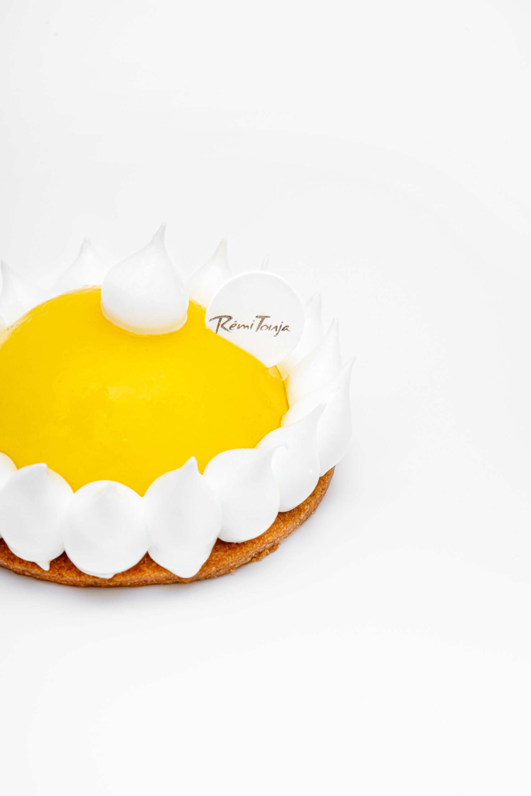 Pâte sablée ultra gourmande aux amandes, crémeux au citron jaune délicatement parfumé au curcuma, meringue fondante.