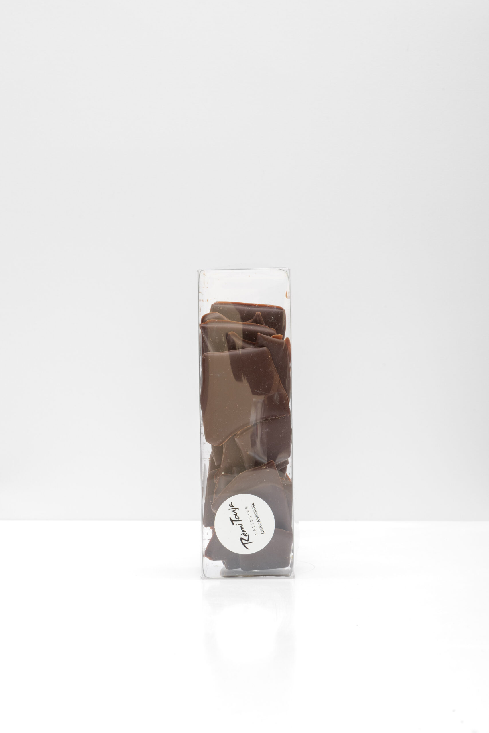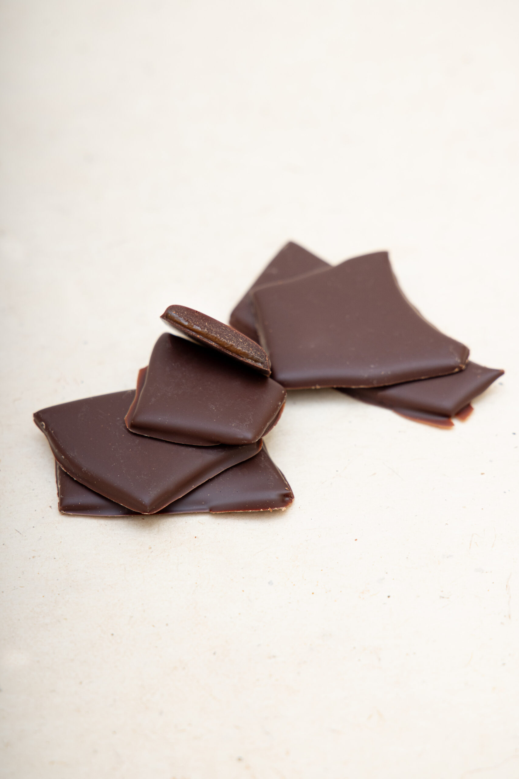 Chocolat Noir (Fèves de cacao, Sucre, Beurre de cacao, Lécithine de tournesol, Extrait naturel de vanille).