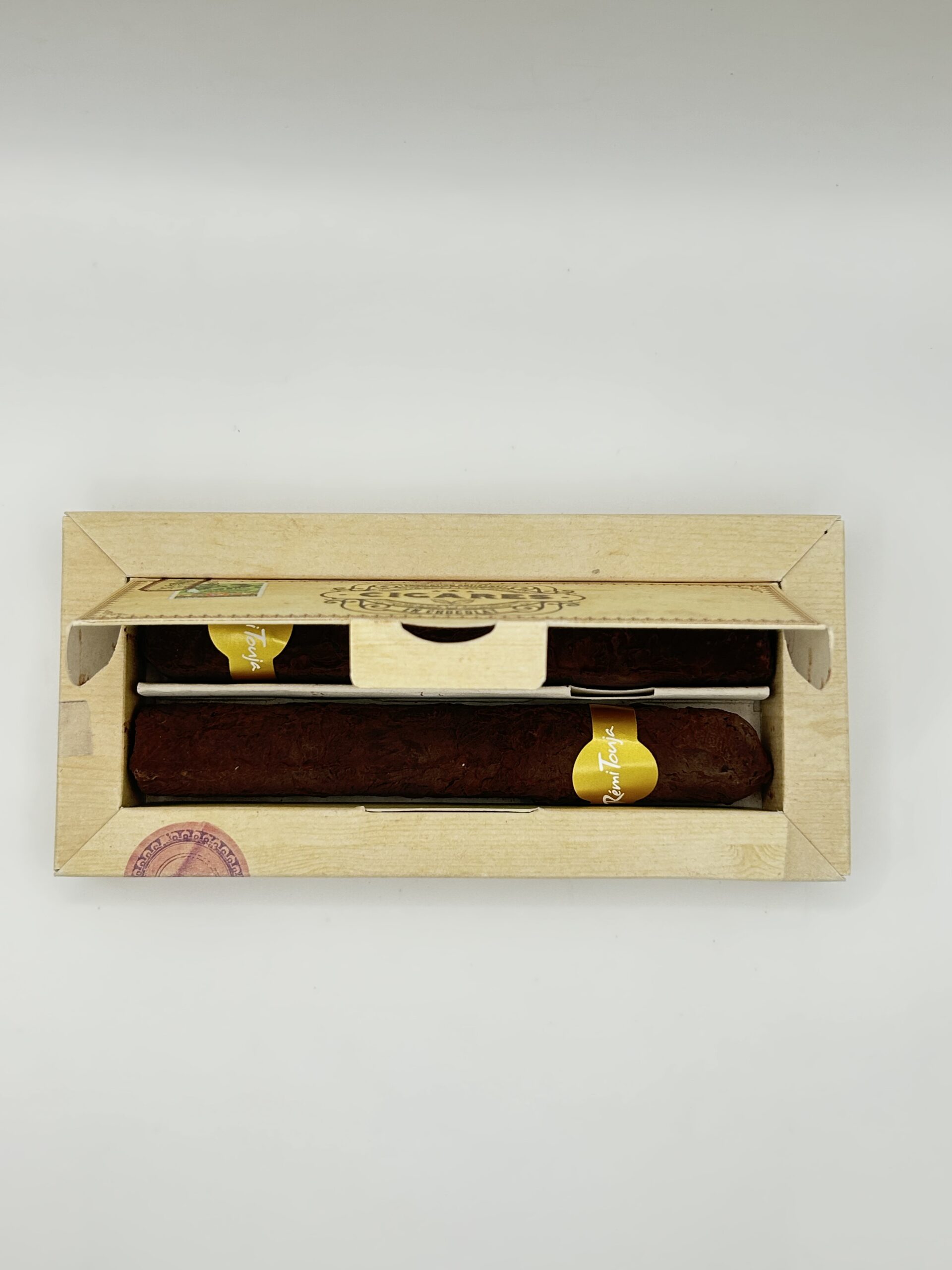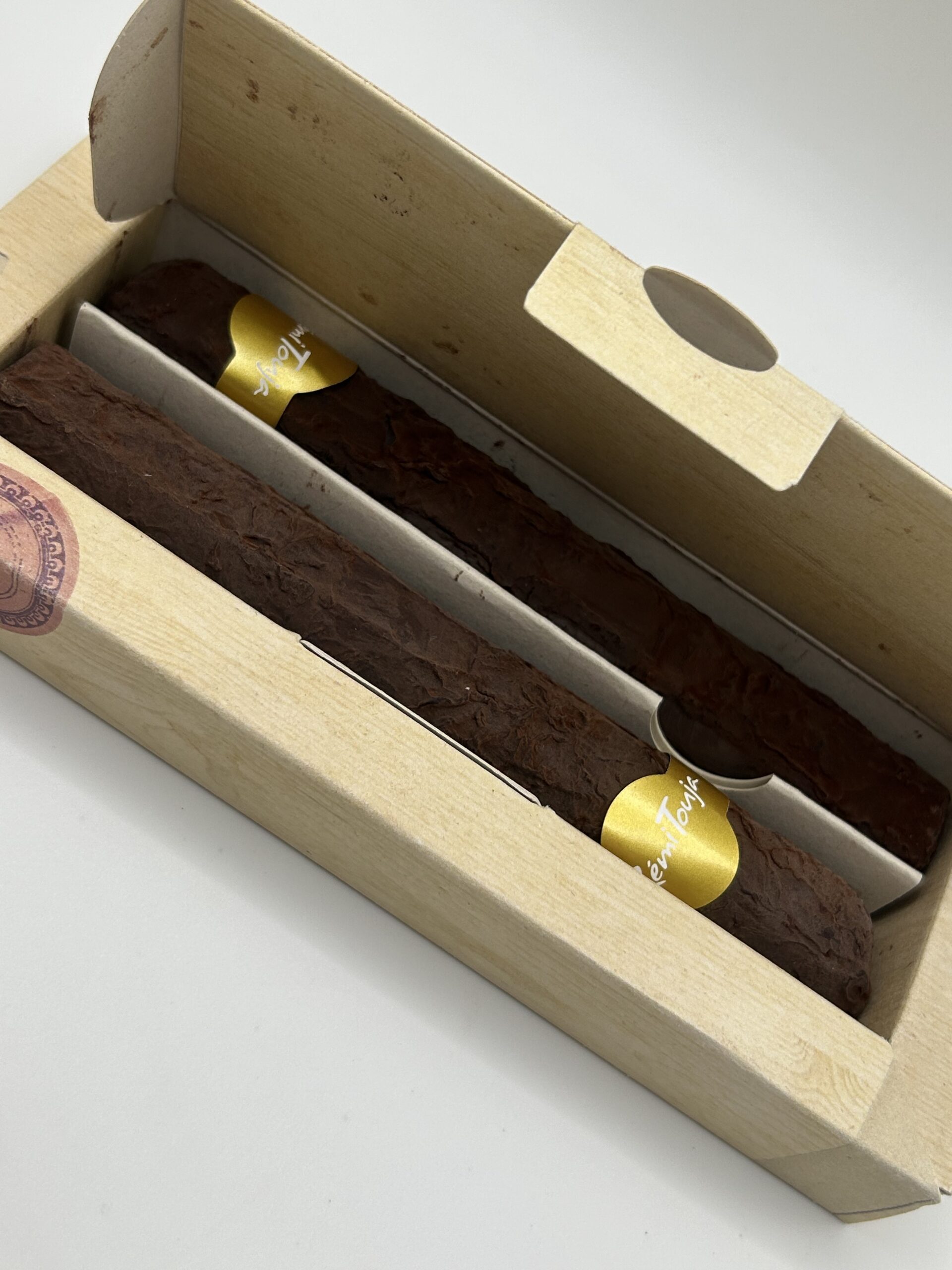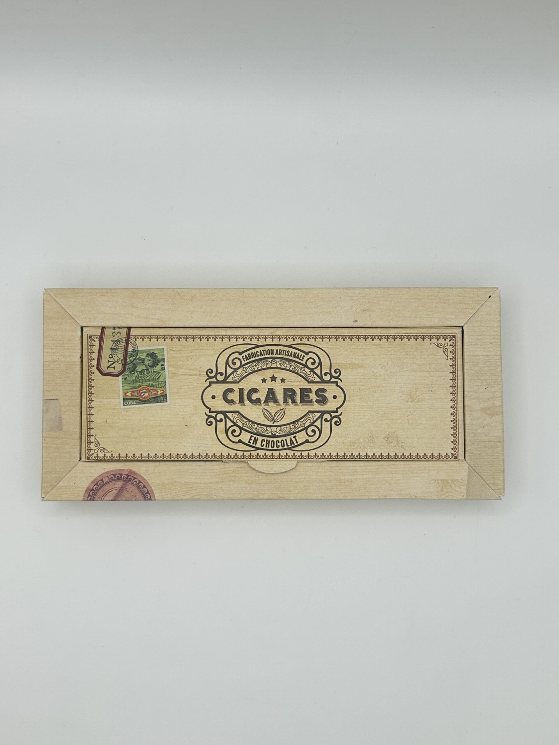 Coffret composé de 2 cigares en chocolat garnis d’un gianduja noisette et riz soufflé.