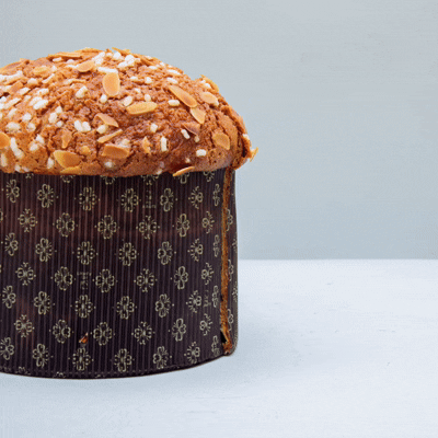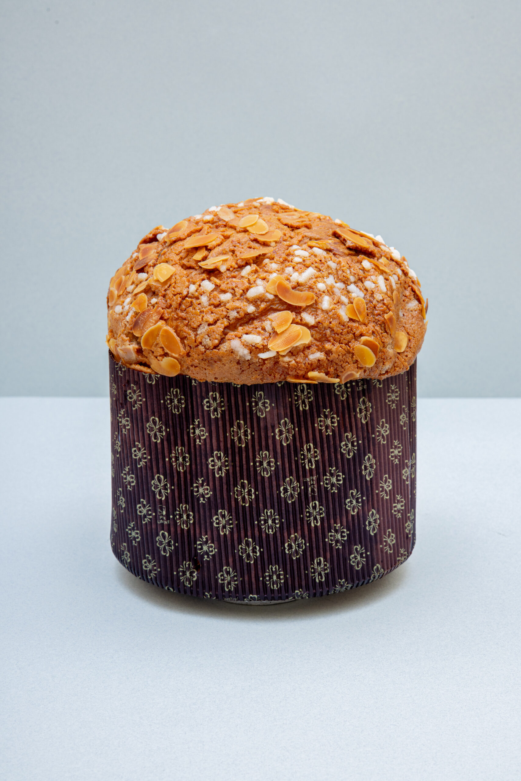 Farine, Oeufs, Agrumes confits maison, Sucre, Beurre, Levain maison, Raisins secs, Eau, Fécule de maïs, Poudre d’amandes, Sucre glace, Amandes effilées, Lait, Sel, Crème, Vanille de Madagascar.